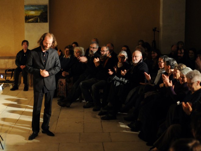 2017年の日本公演同様、みなさんギヨームが色付けしたバッハの楽譜を追っていらっしゃいます。